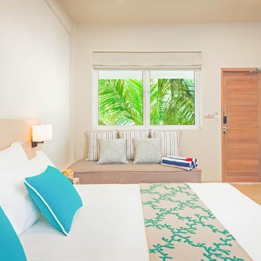 The resort features 82 rooms, including Garden Rooms, Deluxe and Superior rooms, and luxurious Sunrise and Sunset Beach Pool Villas, many of which offer private pools and direct beach access. There are no overwater bungalows.